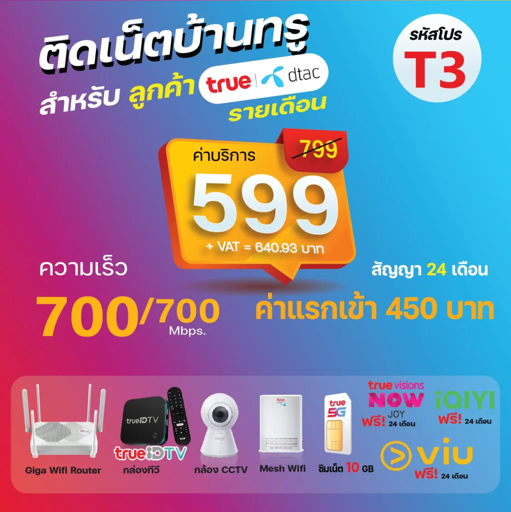โปรเน็ตบ้านทรู ราคา 599 บาท